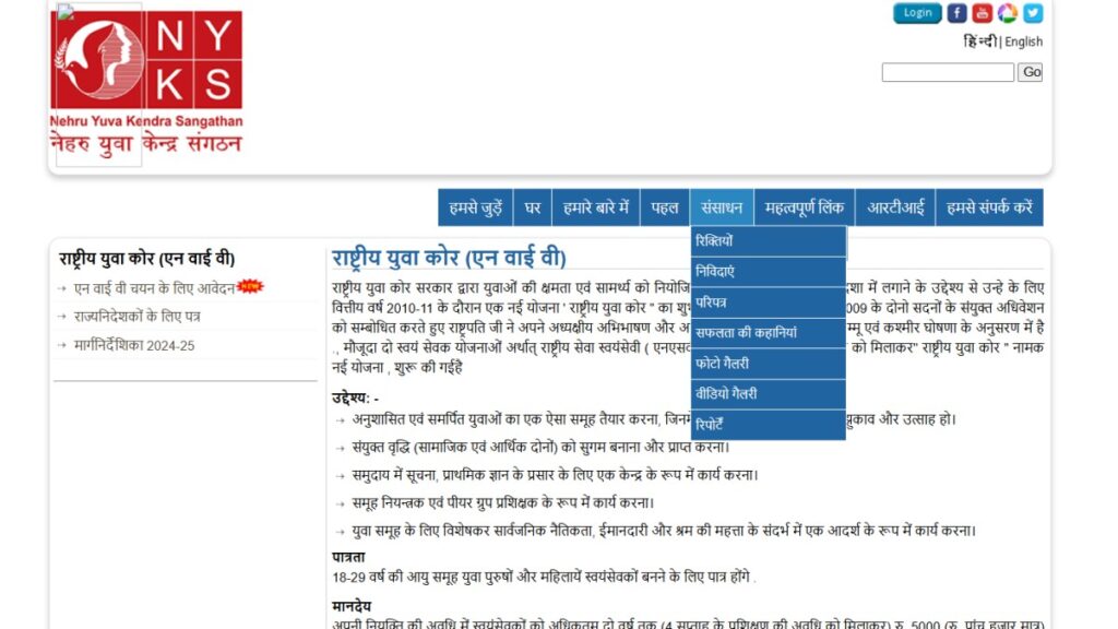 - ऑनलाइन आवेदन पत्र www.nyks.nic.in पर उपलब्ध है